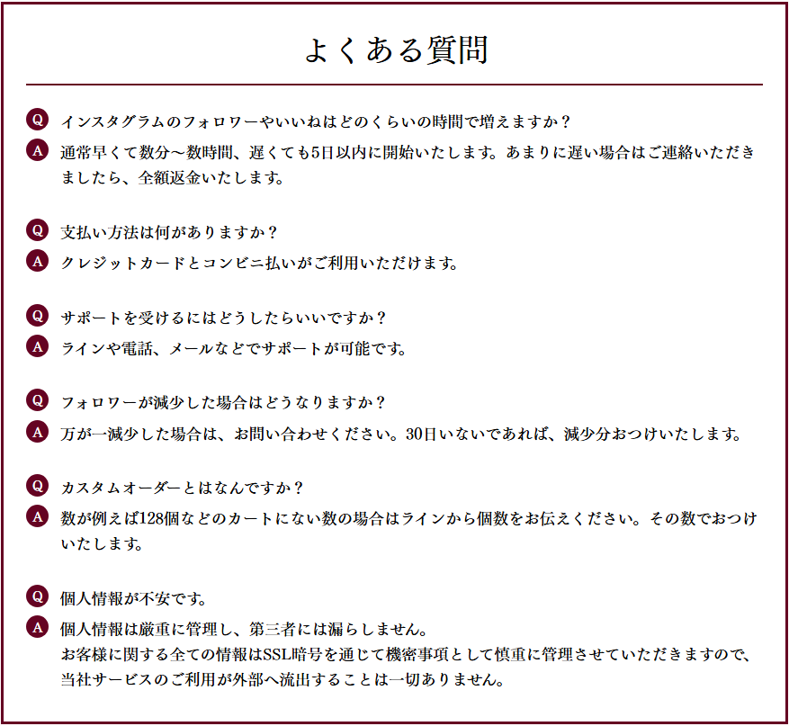 偽アカウントやBOTではなく、リアルなアカウントからのいいね・フォロワー提供を心がけていると明記があり、不自然な急激増を防ぐ仕組みが整っています。これにより、フォロワー数を購入してもアカウントの見た目がナチュラルに保たれ、怪しさが出にくいのがメリットです。